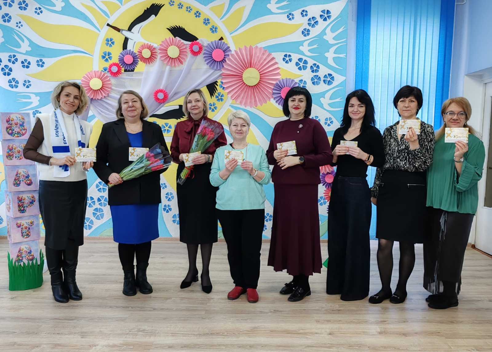 В преддверии Международного женского дня в нашем учреждении образования царила атмосфера тепла и радости. В адрес женщин было сказано много добрых слов и поздравлений с 8 Марта. В торжественной обстановке членам первичной профсоюзной организации ГУО "Волковысский районный ЦКРОиР" были вручены подарки в виде сертификатов.
